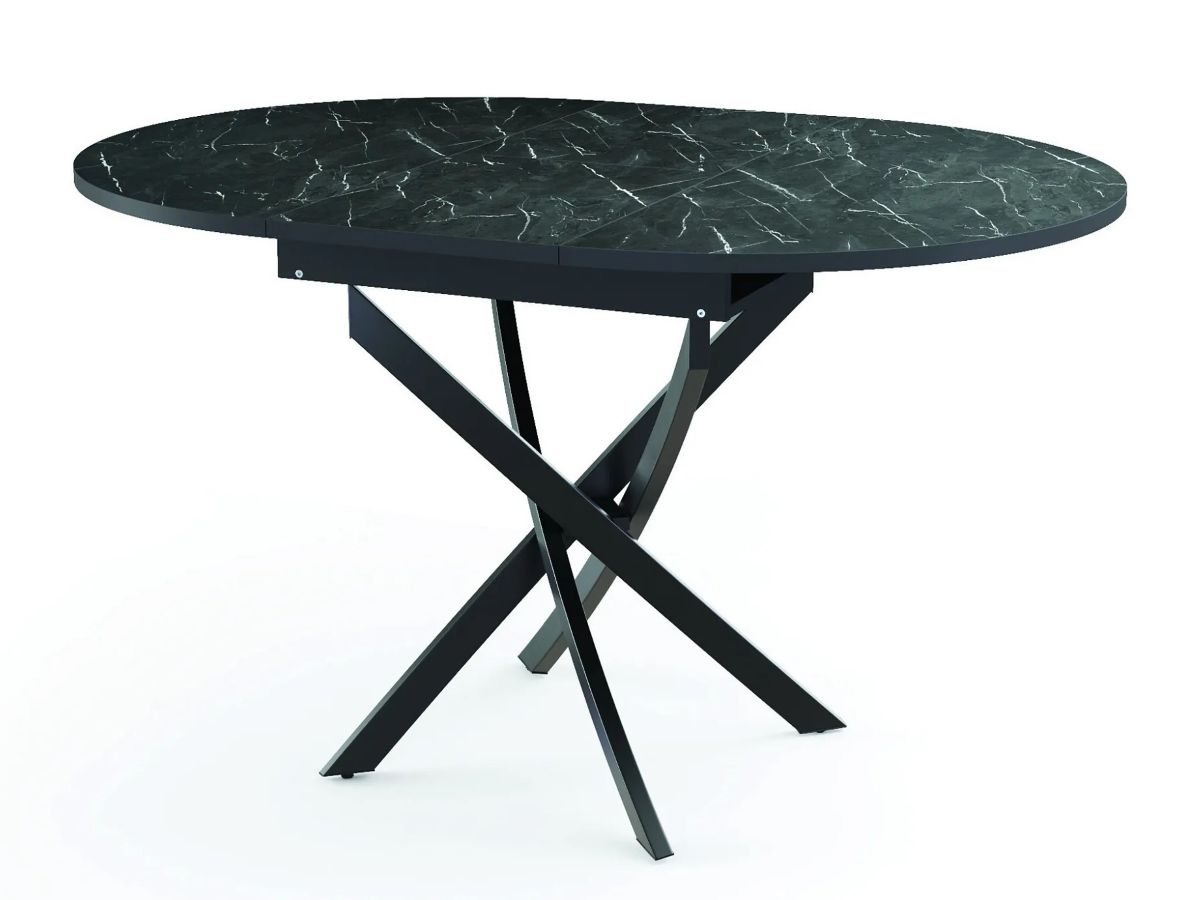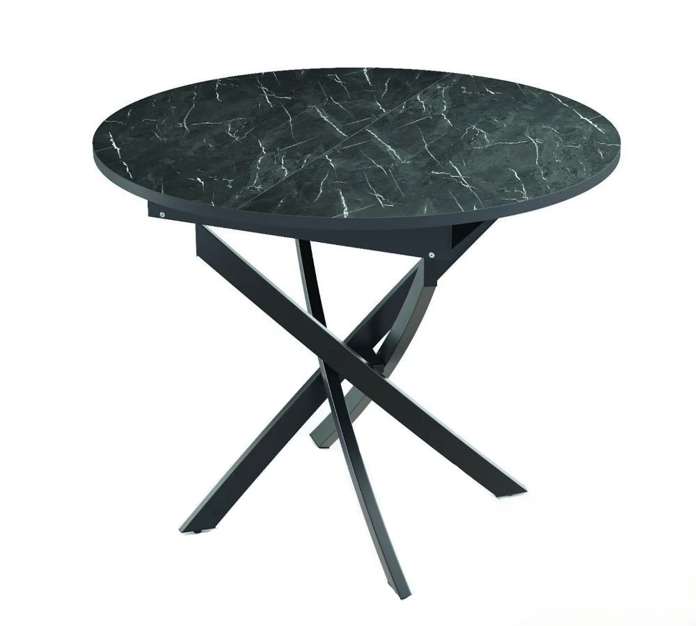Круглый стол Адажио со стильными переплетающимися ножками в черном цвете.