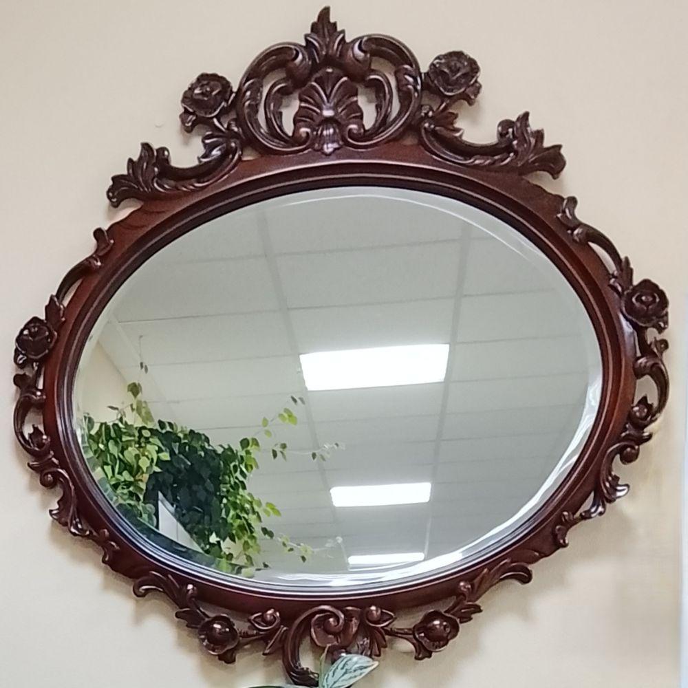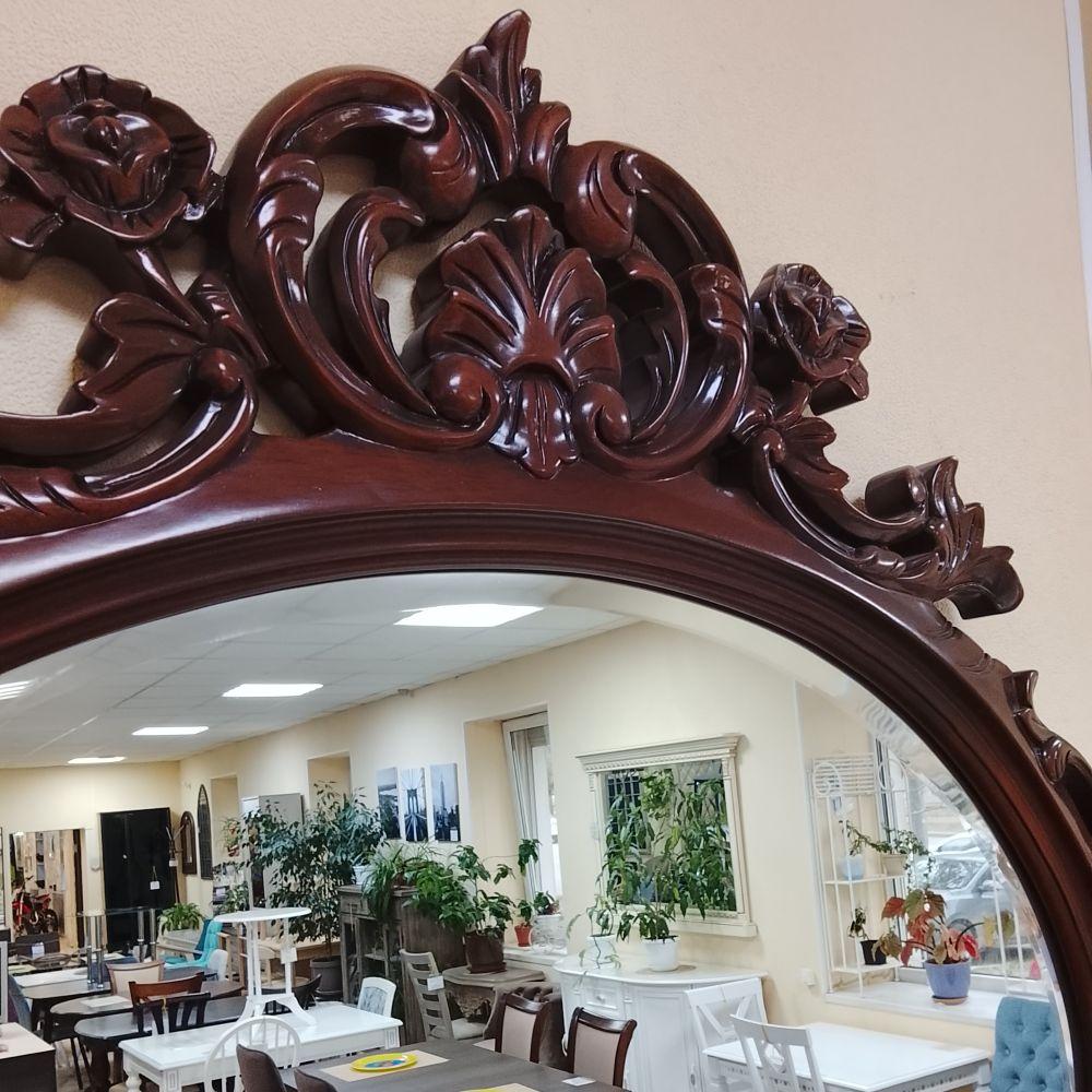 Овальное зеркало PMI 84 в резной раме из красного дерева.