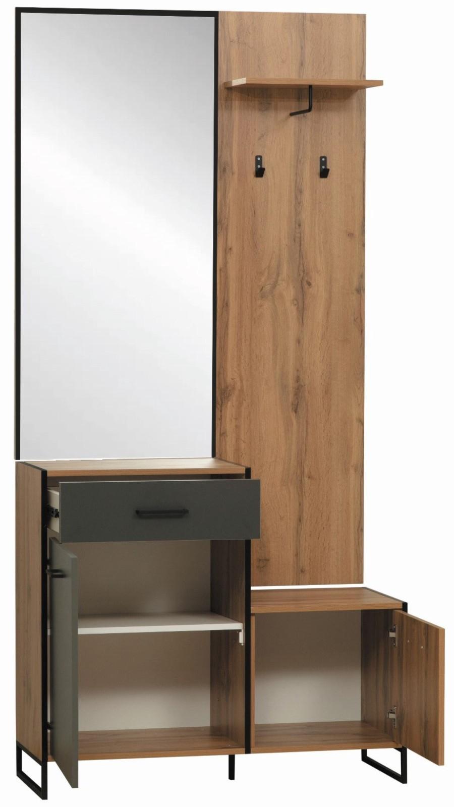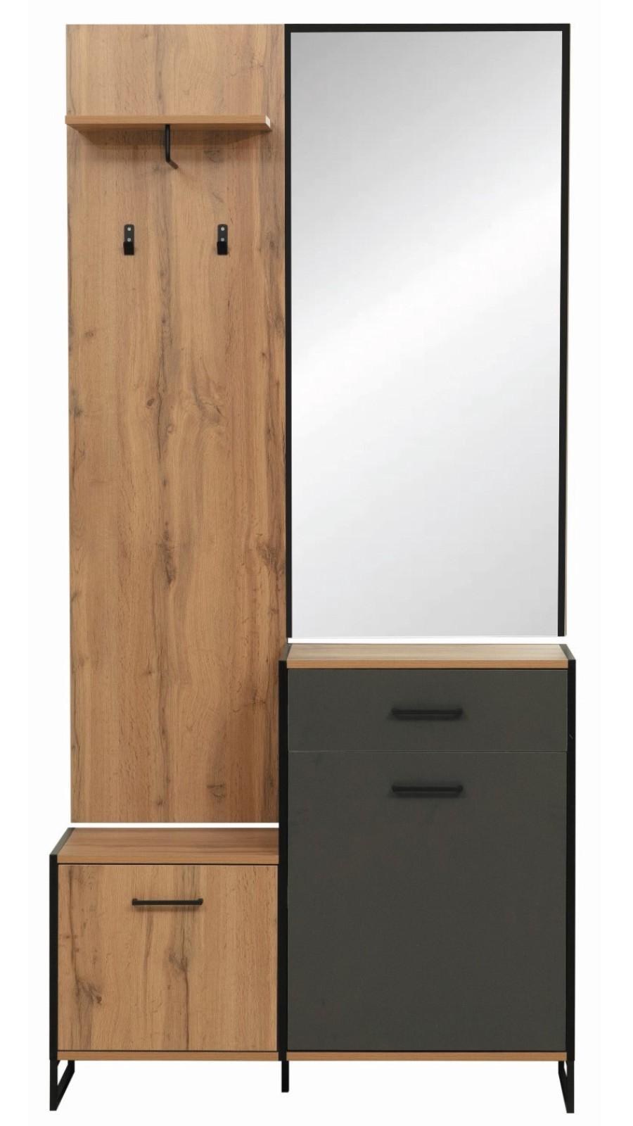 Небольшая прихожая Доната 46.09 выполнена в комбинации диамант серый/дуб вотан.