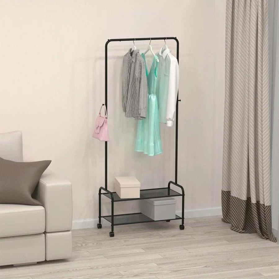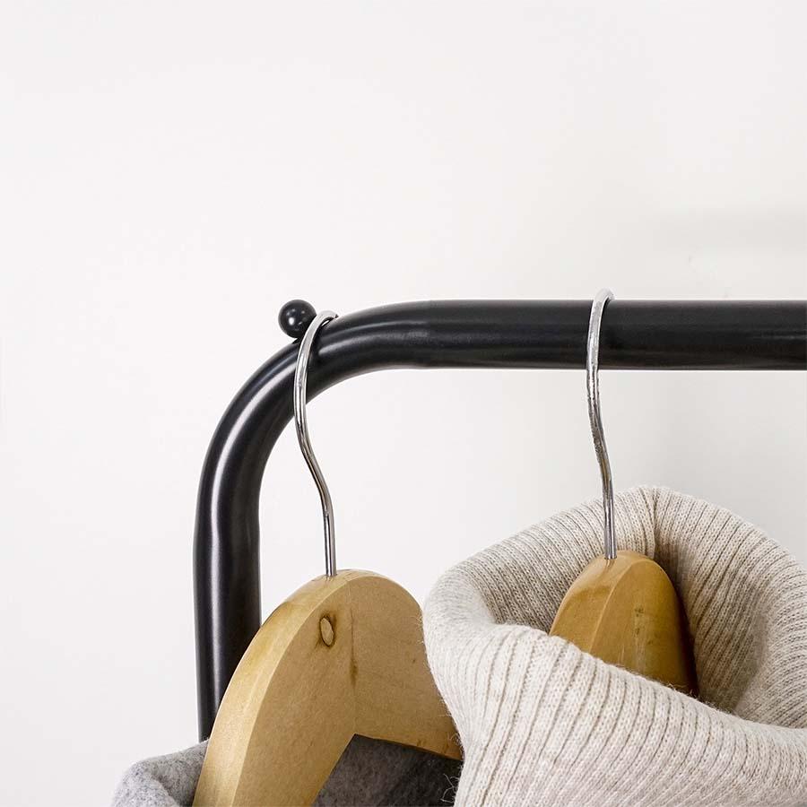 Колесики позволяют при необходимости легко передвинуть вешалку.